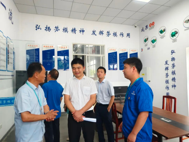 期間調(diào)研組與公司工程師、全國五一勞動(dòng)獎(jiǎng)?wù)芦@得者邱軍強(qiáng)進(jìn)行交談,參觀了公司勞模創(chuàng)新工作室,對工作室在深化校企合作方面的作用表示肯定。