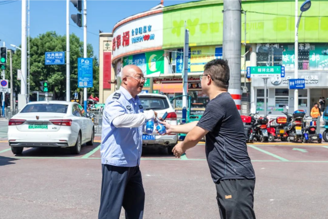 一瓶瓶愛心冰水 傳遞清涼正能量 讓奮戰(zhàn)在高溫下的戶外工作者 喝點冰涼爽口的飲品歇歇腳 感受這份清涼的關(guān)懷